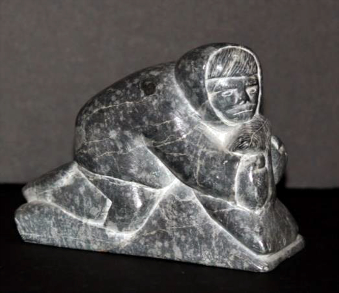 We have come across exciting new pieces from a collector who put together his fabulous Inuit collection in the 1960’s and 1970’s. Having immigrated from Germany to British Columbia in 1952, he rapidly gained an appreciation and passion for the rich cultural heritage of Canada. In British Columbia he made personal connections with many inspiring Northwest Coast Native artists such as Ellen Neel and Rufus Moody and developed a strong interest in the retelling of their mythology through art and carving. But he was also intrigued by the Inuit art – the keenness of their observation of their lifestyles and the hunt which the Inuit carvers simply and beautifully retold through their tools and soapstone. He acquired his pieces from La Federation des Cooperatives du Nouveau-Quebec as well as La Societe Cooperative de Povungnitik. He had the opportunity to personally visit the Federation des Cooperatives du Nouveau-Quebec in the early 1970’s where he acquired many of his favorite pieces. He kept many of the pieces for himself but also resold many carvings as a means of financing his collection. As this was a time long before the internet, photocopiers and digital cameras he spent countless hours sketching each piece with carbon copies to send to interested buyers, predominantly in Germany. He passed away in 1990 and the family, in the interest of downsizing , has finally decided it is time to find a new home for this treasured collection.