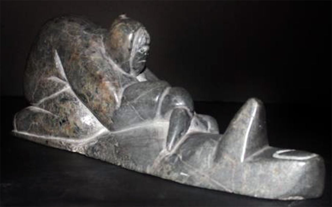 We have come across exciting new pieces from a collector who put together his fabulous Inuit collection in the 1960’s and 1970’s. Having immigrated from Germany to British Columbia in 1952, he rapidly gained an appreciation and passion for the rich cultural heritage of Canada. In British Columbia he made personal connections with many inspiring Northwest Coast Native artists such as Ellen Neel and Rufus Moody and developed a strong interest in the retelling of their mythology through art and carving. But he was also intrigued by the Inuit art – the keenness of their observation of their lifestyles and the hunt which the Inuit carvers simply and beautifully retold through their tools and soapstone. He acquired his pieces from La Federation des Cooperatives du Nouveau-Quebec as well as La Societe Cooperative de Povungnitik. He had the opportunity to personally visit the Federation des Cooperatives du Nouveau-Quebec in the early 1970’s where he acquired many of his favourite pieces. He kept many of the pieces for himself but also resold many carvings as a means of financing his collection. As this was a time long before the internet, photocopiers and digital cameras he spent countless hours sketching each piece with carbon copies to send to interested buyers, predominantly in Germany. He passed away in 1990 and the family, in the interest of downsizing , has finally decided it is time to find a new home for this treasured collection