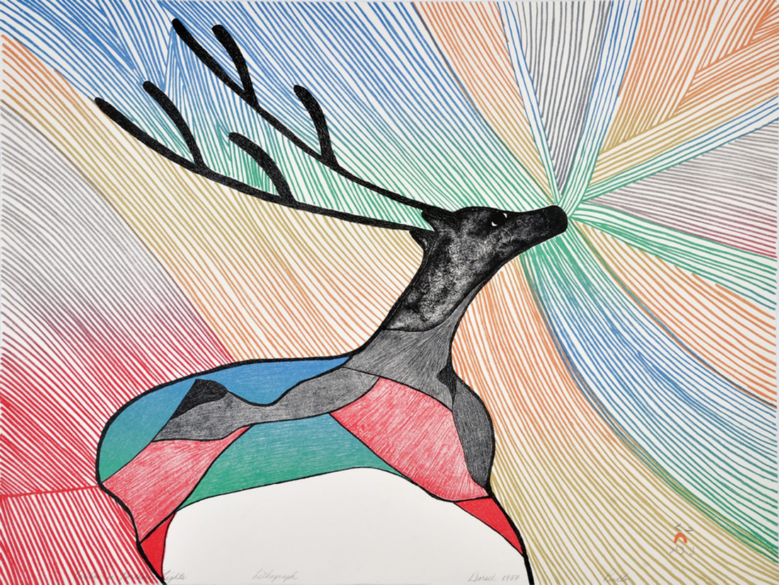 To commemorate the centenary of Pudlo Pudlat’s birth, Dorset Fine Arts is releasing from its archives two never before seen limited edition lithographs, “Formidable Muskox” and “Caribou in Northern Lights”. Printed at the Cape Dorset studios in 1985 and 1987 respectively, these two dynamic prints are superb examples of Pudlo’s work created during the apogee of his career.