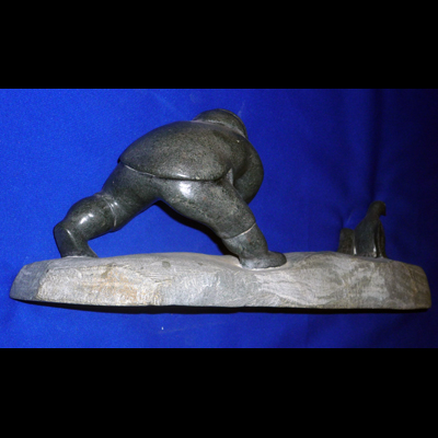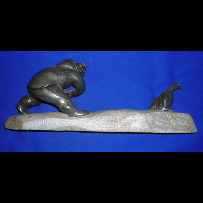 This female egg collector has a stealthy expression as she gathers the eggs from the hapless bird ahead of her. Luckily this is a relatively renewable resource as the hen can lay again.