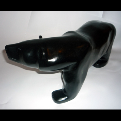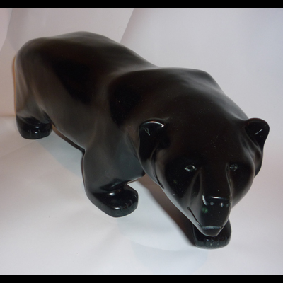 Another of Totan’s gorgeous big bears, this strong, sleek animal is handsomely carved with beautiful lines reflecting its steady movement forward over the snow, following its sensitive nose and the faint scents borne on the Arctic winds.