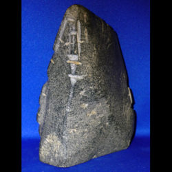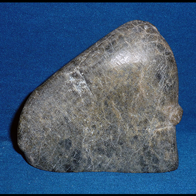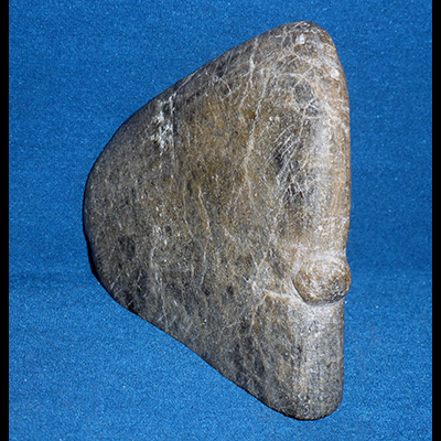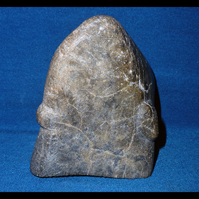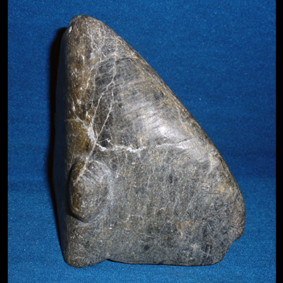 Early artists from Arviat had a style that is minimalist in the extreme. The shape of the stone dictates the final outcome, as shown here, with the faint carving suggesting the walking figure.