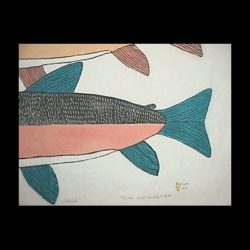 Pitaloosie was born in 1942 on the southwest coast of Baffin Island near the present day community of Cape Dorset. She spent her childhood years in various hospitals in Quebec and Ontario for treatment of tuberculosis. She learned English during this time, and recalls the difficulty she experienced in relearning her native language upon her return to Baffin Island in 1957. She is now one of the few of her generation who speak both English and Inuktitut fluently.Pitaloosie began drawing in the early 1960’s, and quickly established herself as a versatile and intelligent graphic artist. Over the years, she has become a familiar presence in the Kinngait Studios, and her work has been included in annual print collections since 1968. Pitaloosie is represented this year by two very different images of Arctic wildlife, both beautiful examples of her confident drawing style and attention to the fine and telling detail.Since the late 1960’s, Pitaloosie has made frequent trips to southern Canada to attend exhibitions and conferences. In 1967, she spent several weeks in Toronto while her husband, the well-known sculptor Pauta Saila, participated in an International Sculpture Symposium. Subsequently, she has visited Halifax, Toronto, Ottawa, Kansas City and Vermont. Her work has been featured in solo drawing exhibitions, and in 1977, Canada Post issued a stamp depicting her print, Fisherman’s Dream. Her lithograph entitled In the Hills represented the Northwest Territories in the centennial celebration of the National Parks of Canada, 1985. Amnesty International, the international human rights organization, selected a drawing by Pitaloosie entitled “Mother and Child” to use for their 1990 Christmas card. She was also one of nine featured artists in the acclaimed exhibition Isumavut: The Artistic Expression of Nine Cape Dorset Women, which opened at the Canadian Museum of Civilization in the fall of 1994 and continues to travel to other venues.Pitaloosie’s husband, Pauta, passed away in Cape Dorset in June of 2009 at the age of 93. In 2004, both she and Pauta were appointed members of the Royal Canadian Academy of the Arts, in recognition of their life’s work and contributions to Canadian art.