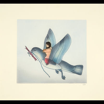 This is the 50th Anniversary of Cape Dorset printmaking ! 1959 – 2009Kavavaow was born in Brandon, Manitoba in 1958 where his mother, Paunichea, was hospitalized for treatment of tuberculosis. He returned to Cape Dorset as a very young child and has lived there since.Kavavaow has demonstrated a range of stylistic abilities over the years – from the very literal to the more expressive. His thematic concerns include depictions of Inuit legends and mythology, Arctic wildlife and an interest in some of the more contemporary aspects of Inuit life. He has a penchant for placing his human characters in unusual situations, well illustrated in this year’s Airlift (2009-7). In this touching little etching, the understanding between the hunter and his collaborator is representative of the mutual respect between all living things in Inuit traditional belief systems. Morning Melody (2009-8) may well be the most beautiful image in this year’s collection.Kavavaow is the latest among the second generation to attract critical acclaim from the contemporary arts audience in the south. He and Suvinai Ashoona have been profiled, along with Nick Sikkuark of Gjoa Haven, in the Winnipeg-based arts magazine, Border Crossings. He traveled to Toronto in June of last year for his first solo exhibition of original drawings, and this year to Vancouver for another exhibition featuring his contemporary work.For several years Kavavaow has worked for the Kinngait Studios as a printmaker – first in the lithography studio and more recently in the stonecut studio. He is an accomplished and precise printmaker who enjoys the opportunity to demonstrate printmaking techniques to young artists and visitors to the studio.Kavavaow lives with his wife and son Peter in Cape Dorset.
