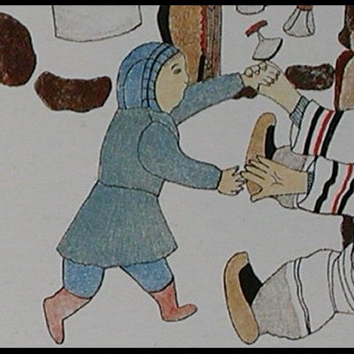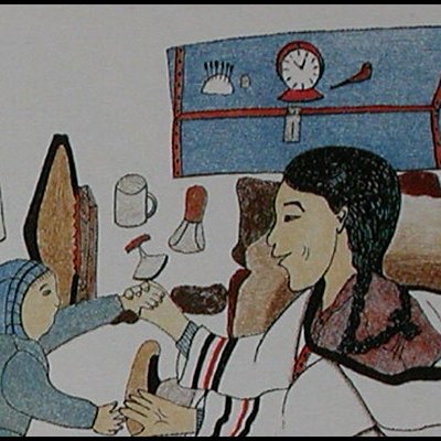 Napachie was born in 1938 at Sako, a small camp on south Baffin Island. She died in December, 2002, of cancer. Napachie was the only daughter of the late Pitseolak Ashoona.Napachie began to draw in the late 1950’s while living at Keakto, a camp near Cape Dorset. Several people living at the camp, including Napachie’s mother and Kenojuak Ashevak had already begun to draw, encouraged by James Houston. Napachies’ early drawing exhibited a free and uninhibited style, still very evident in her contemporary works. She incorporates many aspects of Inuit culture in her work, usually retrieved from her own personal experience.For all but a few years in the early 1970’s, Napachie has drawn consistently. In the mid-1970’s she experimented with mixed media works using coloured pencil and black felt pen in conjunction with acrylic paints. In 1979 and 1980, solo exhibitions of these works were held at Gallery One, Toronto. More recently, her work was included in the Canadian Museum of Civilization’s 1994 exhibition entitled Isumavut: The Artistic Expression of Nine Cape Dorset Women.Napachies’ work in recent years has focused on local history and stories about people and events in the Cape Dorset area, often with accompanying text to explain the circumstances. She thought of herself in her maturing years as an historian and chronicler of local oral history, and she has amassed a unique and important body of work. A selection of these contemporary drawings, along with a retrospective of her earlier work was exhibited and catalogued by the McMichael Canadian Art Collection in their 1999 exhibition Three Women, Three Generations. This exhibition also featured the work of her mother, Pitseolak Ashoona, and her niece, Suvinai Ashoona. A solo exhibition of her later autobiographical works opened in May, 2004 at the Winnipeg Art Gallery.The 2003 Annual Graphics Collection was dedicated to Napachie Pootoogook, in recognition of her many memorable images and life’s work.