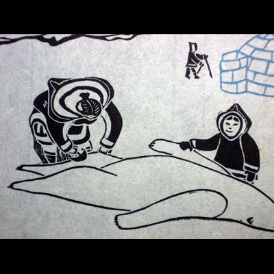When the bear died, the mother butchered it making sure herson wasn’t aware. She told her daughter not to tell her brother.The 2011 Spring Release “Aulajijakka (Things I Remember)” from the Kinngait Studios in Cape Dorset features a folio of 17 linocuts by the late Kananginak Pootoogook enclosed in a presentation folder. Beautifully cut by Kananginak himself in the late 1970’s as part of a typography project introduced at that time, they were never printed. Instead, they were carefully wrapped and stored in the studio archive when the typography project ended.Over 30 years later, in 2010, the linocuts were finally unwrapped and expertly printed in the stonecut print shop. Two of the editions were signed by Kananginak before his death in December 2010, while the remainder were signed posthumously by his son Johnny.Kananginak Pootoogook (1 January 1935 ? 23 November 2010) was an very renown Inuit sculptor and printmaker who lived in Cape Dorset, Nunavut. He died as a result of complications related to surgery for lung cancer and will be sadly missed, his legacy carries through his prized artwork through many collections.Kananginak has been involved with drawing and printmaking since the late 1950’s when the graphic arts program first began at Cape Dorset. Kananginak’s first print, a collaborative image with his father, Pootoogook, was included in the first catalogued collection of Cape Dorset prints in 1959. Since that time, Kananginak’s work has been included in almost every annual collection, and has been interpreted in many different print media – copper engraving, stonecut, stencil, lithography and etching. Kananginak was an accomplished stonecut printmaker himself – in the early years he often proofed and editioned his own work.Kananginak and his siblings grew up in different camp areas on south Baffin Island. Their main camp was Ikirisaq where their father, Pootoogook, was the camp leader. Kananginak married Shooyoo from Cape Dorset in the mid-1950’s. They lived at Ikirisaq until 1958 when they moved to Cape Dorset because of Pootoogook’s failing health.Kananginak has been a prominent community leader. He was instrumental in the formation of the West Baffin Eskimo Cooperative in 1959, and served for several years as president of its Board of Directors. He is also a member of the Royal Canadian Academy of the Arts.In 1978, four of Kananginak’s images were included in a limited edition portfolio released by the World Wildlife Commission. His work has been featured in numerous exhibitions, in both public institutions and commercial galleries. He is also a notable sculptor.In 1997, Kananginak was commissioned by the Governor General of Canada, Romeo Leblanc, to construct an inuksuq in Cape Dorset, which was then dismantled and shipped to Ottawa. Kananginak and his son Johnny were then invited to Ottawa to re-assemble the inuksuq on the grounds of Rideau Hall as part of a tribute to Native people in Canada.From the beginning, Kananginak has represented Arctic wildlife in his work, often monumental in scale. He is especially capable at drawing the many species of birds that frequent the Arctic. He has also done many memorable images illustrating the material culture of the Inuit, and narrative drawings of camp and hunting scenes. This year Kananginak is well represented by five images that demonstrate his broad range as a graphic artist. The majestic Owl on Sealskin (2009-2) is monumental both in size and execution, and represents Kananginak at his most original. Dorset at Twilight (2009-3) and Pootoogook Returns (2009-4) are beautiful, small lithographs representing Kananginak’s obvious affection for his family, his community and it’s unique history.