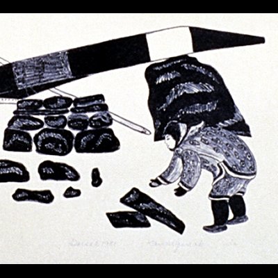 Kananginak Pootoogook (1 January 1935 ? 23 November 2010) was an very renown Inuit sculptor and printmaker who lived in Cape Dorset, Nunavut. He died as a result of complications related to surgery for lung cancer and will be sadly missed, his legacy carries through his prized artwork through many collections.Kananginak has been involved with drawing and printmaking since the late 1950’s when the graphic arts program first began at Cape Dorset. Kananginak’s first print, a collaborative image with his father, Pootoogook, was included in the first catalogued collection of Cape Dorset prints in 1959. Since that time, Kananginak’s work has been included in almost every annual collection, and has been interpreted in many different print media – copper engraving, stonecut, stencil, lithography and etching. Kananginak was an accomplished stonecut printmaker himself – in the early years he often proofed and editioned his own work.Kananginak and his siblings grew up in different camp areas on south Baffin Island. Their main camp was Ikirisaq where their father, Pootoogook, was the camp leader. Kananginak married Shooyoo from Cape Dorset in the mid-1950’s. They lived at Ikirisaq until 1958 when they moved to Cape Dorset because of Pootoogook’s failing health.Kananginak has been a prominent community leader. He was instrumental in the formation of the West Baffin Eskimo Cooperative in 1959, and served for several years as president of its Board of Directors. He is also a member of the Royal Canadian Academy of the Arts.In 1978, four of Kananginak’s images were included in a limited edition portfolio released by the World Wildlife Commission. His work has been featured in numerous exhibitions, in both public institutions and commercial galleries. He is also a notable sculptor.In 1997, Kananginak was commissioned by the Governor General of Canada, Romeo Leblanc, to construct an inuksuq in Cape Dorset, which was then dismantled and shipped to Ottawa. Kananginak and his son Johnny were then invited to Ottawa to re-assemble the inuksuq on the grounds of Rideau Hall as part of a tribute to Native people in Canada.From the beginning, Kananginak has represented Arctic wildlife in his work, often monumental in scale. He is especially capable at drawing the many species of birds that frequent the Arctic. He has also done many memorable images illustrating the material culture of the Inuit, and narrative drawings of camp and hunting scenes. This year Kananginak is well represented by five images that demonstrate his broad range as a graphic artist. The majestic Owl on Sealskin (2009-2) is monumental both in size and execution, and represents Kananginak at his most original. Dorset at Twilight (2009-3) and Pootoogook Returns (2009-4) are beautiful, small lithographs representing Kananginak’s obvious affection for his family, his community and it’s unique history.