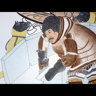 Kananginak Pootoogook (1 January 1935 ? 23 November 2010) was an very renown Inuit sculptor and printmaker who lived in Cape Dorset, Nunavut. He died as a result of complications related to surgery for lung cancer and will be sadly missed, his legacy carries through his prized artwork through many collections.Kananginak has been involved with drawing and printmaking since the late 1950’s when the graphic arts program first began at Cape Dorset. Kananginak’s first print, a collaborative image with his father, Pootoogook, was included in the first catalogued collection of Cape Dorset prints in 1959. Since that time, Kananginak’s work has been included in almost every annual collection, and has been interpreted in many different print media – copper engraving, stonecut, stencil, lithography and etching. Kananginak was an accomplished stonecut printmaker himself – in the early years he often proofed and editioned his own work.Kananginak and his siblings grew up in different camp areas on south Baffin Island. Their main camp was Ikirisaq where their father, Pootoogook, was the camp leader. Kananginak married Shooyoo from Cape Dorset in the mid-1950’s. They lived at Ikirisaq until 1958 when they moved to Cape Dorset because of Pootoogook’s failing health.Kananginak has been a prominent community leader. He was instrumental in the formation of the West Baffin Eskimo Cooperative in 1959, and served for several years as president of its Board of Directors. He is also a member of the Royal Canadian Academy of the Arts.In 1978, four of Kananginak’s images were included in a limited edition portfolio released by the World Wildlife Commission. His work has been featured in numerous exhibitions, in both public institutions and commercial galleries. He is also a notable sculptor.In 1997, Kananginak was commissioned by the Governor General of Canada, Romeo Leblanc, to construct an inuksuq in Cape Dorset, which was then dismantled and shipped to Ottawa. Kananginak and his son Johnny were then invited to Ottawa to re-assemble the inuksuq on the grounds of Rideau Hall as part of a tribute to Native people in Canada.From the beginning, Kananginak has represented Arctic wildlife in his work, often monumental in scale. He is especially capable at drawing the many species of birds that frequent the Arctic. He has also done many memorable images illustrating the material culture of the Inuit, and narrative drawings of camp and hunting scenes. This year Kananginak is well represented by five images that demonstrate his broad range as a graphic artist. The majestic Owl on Sealskin (2009-2) is monumental both in size and execution, and represents Kananginak at his most original. Dorset at Twilight (2009-3) and Pootoogook Returns (2009-4) are beautiful, small lithographs representing Kananginak’s obvious affection for his family, his community and it’s unique history.
