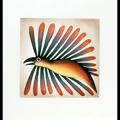 * B. 1927 ? D. 2013 *Like many Cape Dorset artists, Kenojuak spent most her life living on the land in a manner not unlike that of her ancestors. Born at the south Baffin Island camp known as Ikirisaq, she grew up traveling from camp to camp on south Baffin and Arctic Quebec.As a very young woman, Kenojuak was married to Johnniebo and lived with him in various camps including Keakto in the late 1950’s, both Kenojuak and Johnniebo first experimented with carving and drawing. They moved to Cape Dorset in 1966 in order for their children to attend school, and continued to work closely together until Johnniebo’s death.Kenojuak’s drawings were immediately captivating, and she has been represented in almost every annual collection since 1959. Her work has also been included in several special commissions and projects. One of her images was selected for the inclusion in the World Wildlife Print Portfolio Released in 1978. In the same year, the Commonwealth Print Portfolio featured one of her works. Her art and life were the focus of the limited edition book entitled “Graphic Arts of the Inuit: Kenojuak”, published in 1981. In 1988, Via Rail Canada commissioned a large mural from Kenojuak for their Club Car series, which featured some of the most highly respected Canadian artists. Kenojuak’s print Nunavut Qajanatuk (Our Beautiful Land) was commissioned by Indian and Northern Affairs Canada to commemorate the signing of the Inuit Land Claim Agreement in Principle, in April 1990. To commemorate the signing of the Final Agreement early in 1994, Kenojuak conceived and hand-colored a large and exclusive lithograph entitled Nunavut. Her commissioned print Radiant Owl, for the Artist for Kids Trust in Vancouver was released early in the spring of 1996. This was followed by a commission for the International Society of Urologists – a print entitled Owl’s Domain. Her work is still very much in demand, and she has completed several commissions for commercial galleries in recent years.April 1st, 1999 marked the official inception of the new Territory of Nunavut in Canada’s Arctic. To commemorate this historic event, Dorset Fine Arts released a special edition of 99 prints by Kenojauk, a large diptych entitled Siilavut, Nunavut (Our Environment, Our Land).Kenojuak has been accorded several honors over the years. In 1961 she was the subject of a film produced by the National Film Board about her life on the land and as an artist. She received the Order of Canada in 1967. In 1969 she and Johnniebo traveled to Ottawa to collaborate on a mural which hung in the Canadian Pavilion Expo ’70 in Osaka, Japan. In 1970 her print, Enchanted Owl was reproduced on a stamp commemorating the centennial of the Northwest Territories, and again in 1993 Canada Post selected her drawing entitled “The Owl” to be reproduced on their .86 cent stamp.In 1980, Kenojuak traveled to Rotterdam, Holland to be presented at “The Inuit Print” exhibition which was opened by the Queen of the Netherlands. In 1991, she Traveled to Seoul, South Korea to attend the opening of an exhibition of prints and sculpture. In 1994, she was invited to open the exhibition Arctic Spirit: 35 Years of Canadian Inuit Art at the Frye Art Museum in Seattle, Washington. She also traveled to Ottawa in the fall of 1994 for the opening of Isumavut: The Artistic Expression of Nine Cape Dorset Women.In 1992, Kenojuak was awarded Honorary Degrees from both Queen’s University and the University of Toronto. In 1996 she received the prestigious Lifetime Achievement Award at the National Aboriginal Achievement Awards Ceremony in Vancouver. In the Spring of 2001 Kenojuak was introduced into Canada’s Walk of Fame, and traveled with her daughter Silaqi to attend the ceremonies in Toronto. She is the first Inuit Artist to be so honored, and joins many other famous and accomplished Canadians.Much loved and well respected, Kenojuaks works and her long list of accomplishments will continue to inspire many for generations to come. She had recently been working on a very special commission – the design for a stained glass window to be installed in the chapel of a private school outside of Toronto.