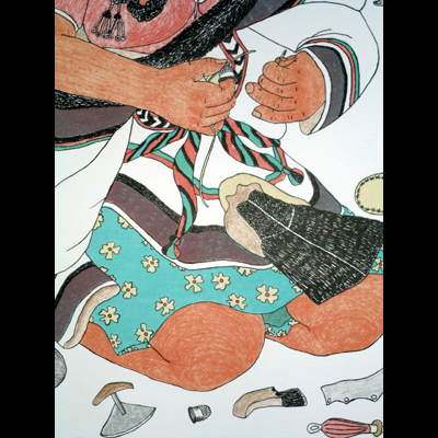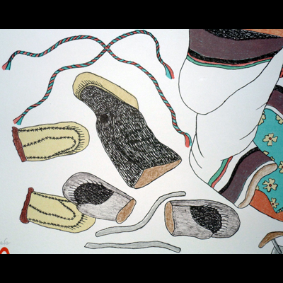 Kananginak Pootoogook (1 January 1935 ? 23 November 2010) was an very renown Inuit sculptor and printmaker who lived in Cape Dorset, Nunavut. He died as a result of complications related to surgery for lung cancer and will be sadly missed, his legacy carries through his prized artwork through many collections.Kananginak has been involved with drawing and printmaking since the late 1950’s when the graphic arts program first began at Cape Dorset. Kananginak’s first print, a collaborative image with his father, Pootoogook, was included in the first catalogued collection of Cape Dorset prints in 1959. Since that time, Kananginak’s work has been included in almost every annual collection, and has been interpreted in many different print media – copper engraving, stonecut, stencil, lithography and etching. Kananginak was an accomplished stonecut printmaker himself – in the early years he often proofed and editioned his own work.Kananginak and his siblings grew up in different camp areas on south Baffin Island. Their main camp was Ikirisaq where their father, Pootoogook, was the camp leader. Kananginak married Shooyoo from Cape Dorset in the mid-1950’s. They lived at Ikirisaq until 1958 when they moved to Cape Dorset because of Pootoogook’s failing health.Kananginak has been a prominent community leader. He was instrumental in the formation of the West Baffin Eskimo Co?operative in 1959, and served for several years as president of its Board of Directors. He is also a member of the Royal Canadian Academy of the Arts.In 1978, four of Kananginak’s images were included in a limited edition portfolio released by the World Wildlife Commission. His work has been featured in numerous exhibitions, in both public institutions and commercial galleries. He is also a notable sculptor.In 1997, Kananginak was commissioned by the Governor General of Canada, Romeo Leblanc, to construct an inuksuq in Cape Dorset, which was then dismantled and shipped to Ottawa. Kananginak and his son Johnny were then invited to Ottawa to re-assemble the inuksuq on the grounds of Rideau Hall as part of a tribute to Native people in Canada.From the beginning, Kananginak has represented Arctic wildlife in his work, often monumental in scale. He is especially capable at drawing the many species of birds that frequent the Arctic. He has also done many memorable images illustrating the material culture of the Inuit, and narrative drawings of camp and hunting scenes. This year Kananginak is well represented by five images that demonstrate his broad range as a graphic artist. The majestic Owl on Sealskin (2009-2) is monumental both in size and execution, and represents Kananginak at his most original. Dorset at Twilight (2009-3) and Pootoogook Returns (2009-4) are beautiful, small lithographs representing Kananginak’s obvious affection for his family, his community and it’s unique history.