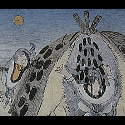 Napachie was born in 1938 at Sako, a small camp on south Baffin Island. She died in December, 2002, of cancer. Napachie was the only daughter of the late Pitseolak Ashoona.Napachie began to draw in the late 1950’s while living at Keakto, a camp near Cape Dorset. Several people living at the camp, including Napachie’s mother and Kenojuak Ashevak had already begun to draw, encouraged by James Houston. Napachies’ early drawing exhibited a free and uninhibited style, still very evident in her contemporary works. She incorporates many aspects of Inuit culture in her work, usually retrieved from her own personal experience.For all but a few years in the early 1970’s, Napachie has drawn consistently. In the mid-1970’s she experimented with mixed media works using coloured pencil and black felt pen in conjunction with acrylic paints. In 1979 and 1980, solo exhibitions of these works were held at Gallery One, Toronto. More recently, her work was included in the Canadian Museum of Civilization’s 1994 exhibition entitled Isumavut: The Artistic Expression of Nine Cape Dorset Women.Napachies’ work in recent years has focused on local history and stories about people and events in the Cape Dorset area, often with accompanying text to explain the circumstances. She thought of herself in her maturing years as an historian and chronicler of local oral history, and she has amassed a unique and important body of work. A selection of these contemporary drawings, along with a retrospective of her earlier work was exhibited and catalogued by the McMichael Canadian Art Collection in their 1999 exhibition Three Women, Three Generations. This exhibition also featured the work of her mother, Pitseolak Ashoona, and her niece, Suvinai Ashoona. A solo exhibition of her later autobiographical works opened in May, 2004 at the Winnipeg Art Gallery.The 2003 Annual Graphics Collection was dedicated to Napachie Pootoogook, in recognition of her many memorable images and life’s work.