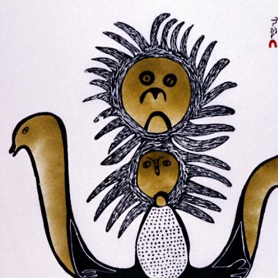 Quote from the 1966 Cape Dorset Print Cataloque: * Perhaps the most widely popular of the Cape Dorset artist’s, Lucy’s subject matter has always been interesting, her view point fresh and warm and her style distinctive. Her print, “Woman’s Bear” foind its way into the Tate Gallery, she is among the most prolific artists at Cape Dorset.*