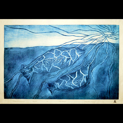 Jolly Atagoyuk is a talented printmaker and artist from Qikiqtarjuaq (formerly Broughton Island), NU who now resides in Panniqtuuq (Pangnirtung), NU. Atagoyuk studied woodcut printmaking at Arctic College before relocating to Iqaluit to further his education where he studied etching, stencil, silk screening, watercolour and oil painting, graduating with a diploma in fine arts.A long time printmaker at Uqqurmiut, Atagoyuk’s prints engage with Inuit traditions and culture calling upon long-established Inuit aesthetics, figures and imagery with animals and spirit creatures as recurring figures in his pieces. In the print Mother with a Young Seal (2018) Atagoyuk shows the viewer an under ice point-of-view as a seal and her pup swim upwards towards an air hole in the ice. As well as making his own prints Atagoyuk also interprets original drawings from community archives.In 2001 Atagoyuk took part in a jeweller’s course at Arctic College where he was able to quickly pick up metalwork.Atagoyuk teaches printmaking in Panniqtuuq and attends art festivals across the arctic during the year showing and selling his work. His prints are a part of the 2018 Pangnirtung Print Collection.