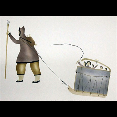 Print signed by the artists widow after his death”The children are happy because they are being pulled on a sled, and because they are going someplace.They are going out fishing. This print shows that even if we were not going to have a bumpy ride we used to be very happy children”.