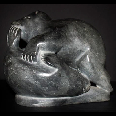 We have come across exciting new pieces from a collector who put together his fabulous Inuit collection in the 1960’s and 1970’s. Having immigrated from Germany to British Columbia in 1952, he rapidly gained an appreciation and passion for the rich cultural heritage of Canada. In British Columbia he made personal connections with many inspiring Northwest Coast Native artists such as Ellen Neel and Rufus Moody and developed a strong interest in the retelling of their mythology through art and carving. But he was also intrigued by the Inuit art ? the keenness of their observation of their lifestyles and the hunt which the Inuit carvers simply and beautifully retold through their tools and soapstone. He acquired his pieces from La Federation des Cooperatives du Nouveau-Quebec as well as La Societe Cooperative de Povungnitik. He had the opportunity to personally visit the Federation des Cooperatives du Nouveau-Quebec in the early 1970’s where he acquired many of his favourite pieces. He kept many of the pieces for himself but also resold many carvings as a means of financing his collection. As this was a time long before the internet, photocopiers and digital cameras he spent countless hours sketching each piece with carbon copies to send to interested buyers, predominantly in Germany. He passed away in 1990 and the family, in the interest of downsizing , has finally decided it is time to find a new home for this treasured collection.