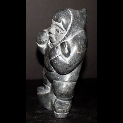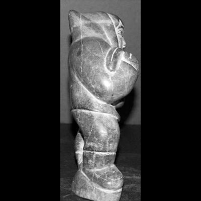 Signed bottom as Adamie KoomBelieved to be Noah Adamie QumalukWe have come across exciting new pieces from a collector who put together his fabulous Inuit collection in the 1960’s and 1970’s. Having immigrated from Germany to British Columbia in 1952, he rapidly gained an appreciation and passion for the rich cultural heritage of Canada. In British Columbia he made personal connections with many inspiring Northwest Coast Native artists such as Ellen Neel and Rufus Moody and developed a strong interest in the retelling of their mythology through art and carving. But he was also intrigued by the Inuit art ? the keenness of their observation of their lifestyles and the hunt which the Inuit carvers simply and beautifully retold through their tools and soapstone. He acquired his pieces from La Federation des Cooperatives du Nouveau-Quebec as well as La Societe Cooperative de Povungnitik. He had the opportunity to personally visit the Federation des Cooperatives du Nouveau-Quebec in the early 1970’s where he acquired many of his favourite pieces. He kept many of the pieces for himself but also resold many carvings as a means of financing his collection. As this was a time long before the internet, photocopiers and digital cameras he spent countless hours sketching each piece with carbon copies to send to interested buyers, predominantly in Germany. He passed away in 1990 and the family, in the interest of downsizing , has finally decided it is time to find a new home for this treasured collection