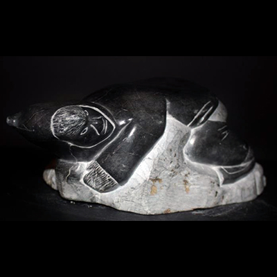 We have come across exciting new pieces from a collector who put together his fabulous Inuit collection in the 1960’s and 1970’s. Having immigrated from Germany to British Columbia in 1952, he rapidly gained an appreciation and passion for the rich cultural heritage of Canada. In British Columbia he made personal connections with many inspiring Northwest Coast Native artists such as Ellen Neel and Rufus Moody and developed a strong interest in the retelling of their mythology through art and carving. But he was also intrigued by the Inuit art ? the keenness of their observation of their lifestyles and the hunt which the Inuit carvers simply and beautifully retold through their tools and soapstone. He acquired his pieces from La Federation des Cooperatives du Nouveau-Quebec as well as La Societe Cooperative de Povungnitik. He had the opportunity to personally visit the Federation des Cooperatives du Nouveau-Quebec in the early 1970’s where he acquired many of his favourite pieces. He kept many of the pieces for himself but also resold many carvings as a means of financing his collection. As this was a time long before the internet, photocopiers and digital cameras he spent countless hours sketching each piece with carbon copies to send to interested buyers, predominantly in Germany. He passed away in 1990 and the family, in the interest of downsizing , has finally decided it is time to find a new home for this treasured collection