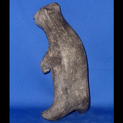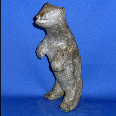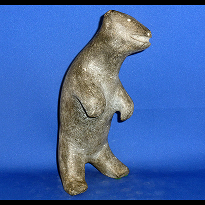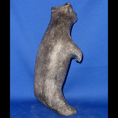 Carved in the 80’s, this little bear is true example of the style of carving we see in most vintage pieces, he is a representation of “bear”, not an accurate copy of the animal. His expression can be taken as a fierce growl or a grin and the attitude of his upright body supports either emotion…aggressive predator or starlit dancing bear… he is a precious little creature.