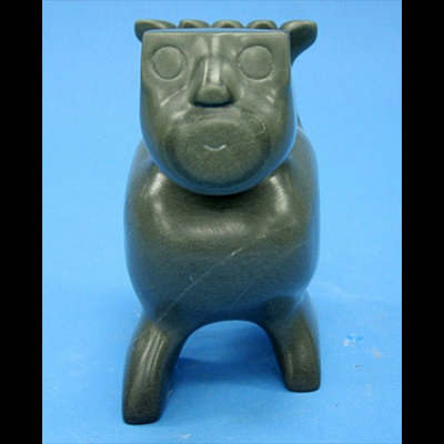Joe Ekidlak was born in 1952 and still works and lives in Sanikiluaq the main settlement on the Belcher Island group that lies off of the coast of Nunavik or Arctic Quebec. The area is known for its smooth greyish limestone which is only found in this remote region. Inclusions of fossil plant remains gives this stone an interesting structure and vibrancy not found anywhere else. Out of this unusual material Joe creates a huge variety of emotionally felt depictions of his peoples past and mythology. The main subjects are transformations within the human and animal world. They are not only examples of Bird / Human / Bear / Sea Creature / Shaman spirit figures ….. they shine and sparkle with emotion and one has to see and touch them to fully appreciate his artistic magic. They are all so tactile which is a big part of what makes his work truly one of a kind !