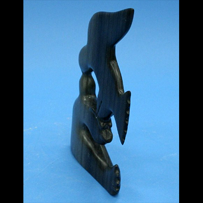 Joe Ekidlak was born in 1952 and still works and lives in Sanikiluaq the main settlement on the Belcher Island group that lies off of the coast of Nunavik or Arctic Quebec. The area is known for its smooth greyish limestone which is only found in this remote region. Inclusions of fossil plant remains gives this stone an interesting structure and vibrancy not found anywhere else. Out of this unusual material Joe creates a huge variety of emotionally felt depictions of his peoples past and mythology. The main subjects are transformations within the human and animal world. They are not only examples of Bird / Human / Bear / Sea Creature / Shaman spirit figures ….. they shine and sparkle with emotion and one has to see and touch them to fully appreciate his artistic magic. They are all so tactile which is a big part of what makes his work truly one of a kind !