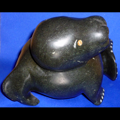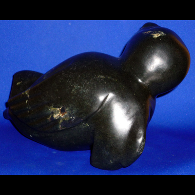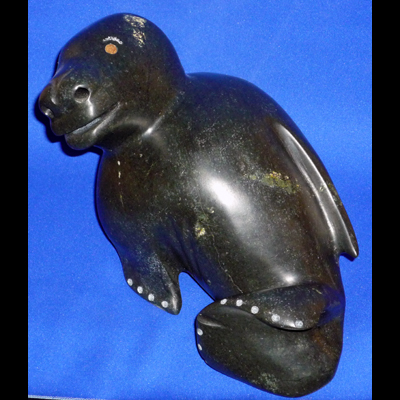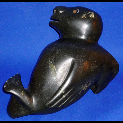 Gleaming softly, smooth and muscular, this animal is captured at the moment of transformation to seal form, Maudie deftly carved this beautiful creature as it is being born into this world. This is a modern piece with the feeling of tradition in its clean, simple styling.