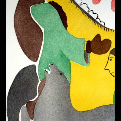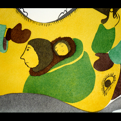 There was a couple with two sons living on the coast. The woman was a shaman. They had no more food. Near dawn, she started calling for seals. The oldest son came running in from play to tell his mother that he heard something howl from the open water. “Don’t be scared”, she said, “it’s only a seal calling the other seals to come”. The man went out to see. He prepared his kayak and harpoon. He went and got a lot of seals and the wife cut them up with her ulu. The woman’s hands were burned and cut from the blood of the seals. She put some in a cache and some out to dry. While doing this, she thought of ways to kill her husband. That night she killed him while she slept. Two summers passed. The woman and her sons had no more food. Hers sons turned into wolverines and she, into a seal.