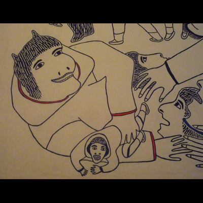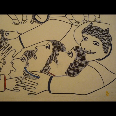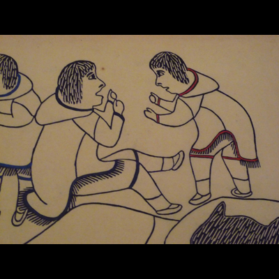 Born: 1930 Female E2-386 Place of Birth: Black River Area Resides: Baker Lake Drawings, Prints, Wallhangings, Sculpture Victoria’s husband, Samson Kayuryuk, creates carvings, prints and drawings. Their son, Paul Aglakuaq Kayuryuk, is also an artist. Victoria is the daughter of Jessie Oonark and most of her brothers and sisters are artists: Janet Kigusiuq, Nancy Pukingrak, Peggy Qablunaaq Aittauq, Mary Singaqti Yuusipik, Josiah Nuilaalik, Miriam Marealik Qiyuk and William Noah. “Victoria Mamnguksualuk is one of the best-known Canadian Inuit artists of her generation. Born near Garry Lake, Northwest Territories, she lived a migratory existence on the land until she was in her early thirties. Because of widespread disease and famine in the hunting camps of the Barren Lands region, Mamnguksualuk and her family, like many Inuits, moved to Baker Lake in 1963. Mamnguksualuk is the daughter of Jessie Oonark (c.1906-1985), one of the best known of all Inuit artists. Both mother and daughter became active in the artistic co-operative at Baker Lake. As a second generation Inuit artist to live in the settlements, Mamnguksualuk’s art has been somewhat influenced by her exposure to images from the outside world. More than some of her predecessors she uses the conventions of European art in her depictions of three-dimensional space and sequential action. Her work is characterized by its complex scenes involving multiple figures and vigorous activity. Mamnguksualuk is particularly interested in the depiction of Inuit myth.”